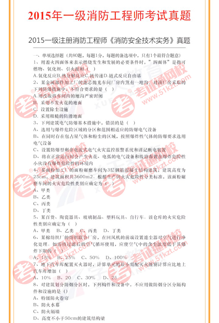 2015年一级注册消防工程师《消防安全技术实务》考试已结束,网友提供了部分一级消防工程师考试真题,仅供参考!